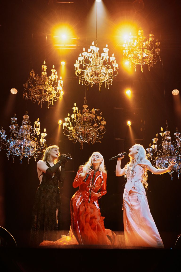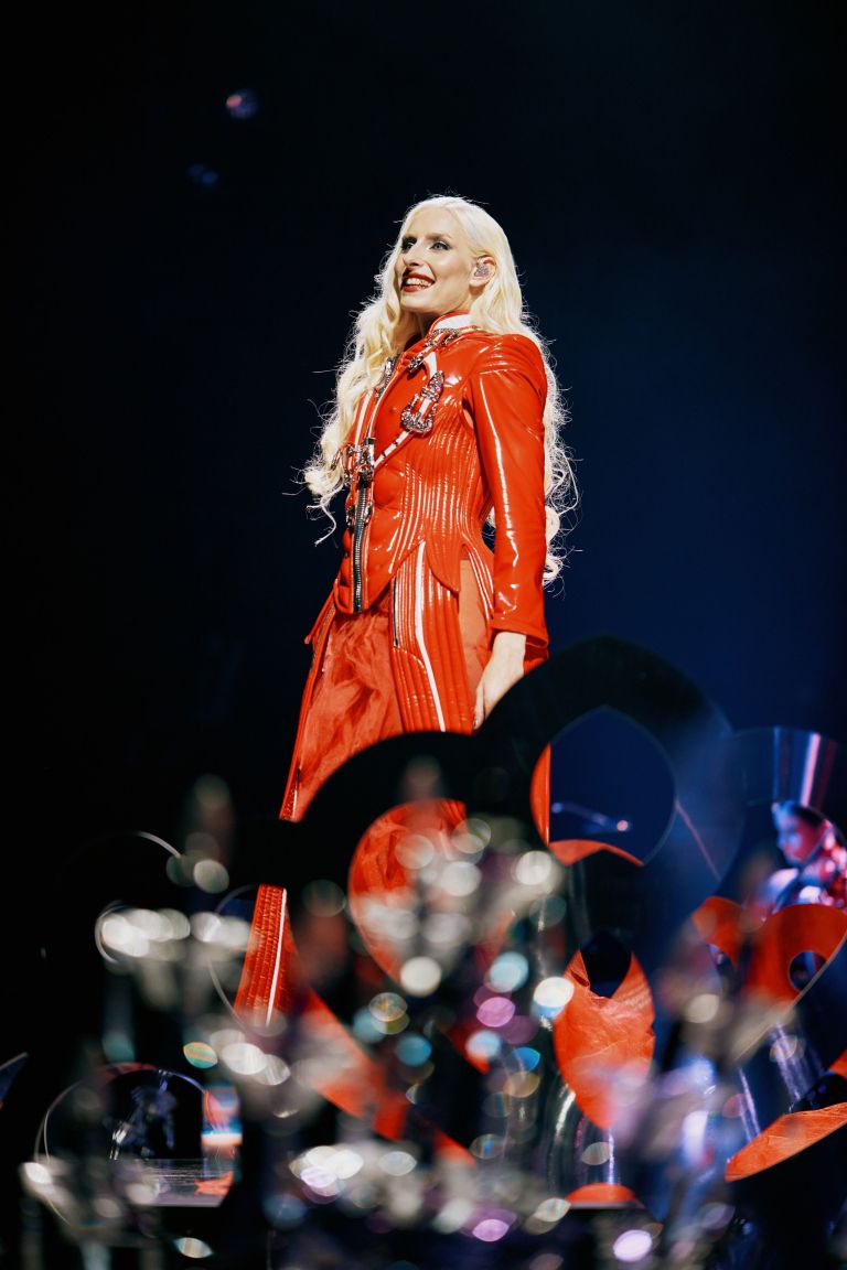 Za pravi vizualni spektakel je poskrbela tudi z dobesedno preobrazbo – sredi koncerta so ji namreč člani ekipe pomagali, da se je na odru iz črne kreacije hrvaškega modnega oblikovalca Zigmana preoblekla v rdečo. Ob spremljavi orgel in godal je prizor malce spominjal na obred prečiščenja. »Zdaj vem, da se ne morem ujeti v eno verzijo sebe. Nisem samo to, kar ljudje vidijo danes; sestavljena sem iz vseh teh faz, poskusov, preoblek – iz vsega, kar sem morala pustiti za sabo, in vsega, kar sem si drznila postati. Vsakič, ko nekaj razpade, se ustvari prostor za novo. In v tem prostoru se spet najdem. To je zame metamorfoza,« je povedala pevka.
