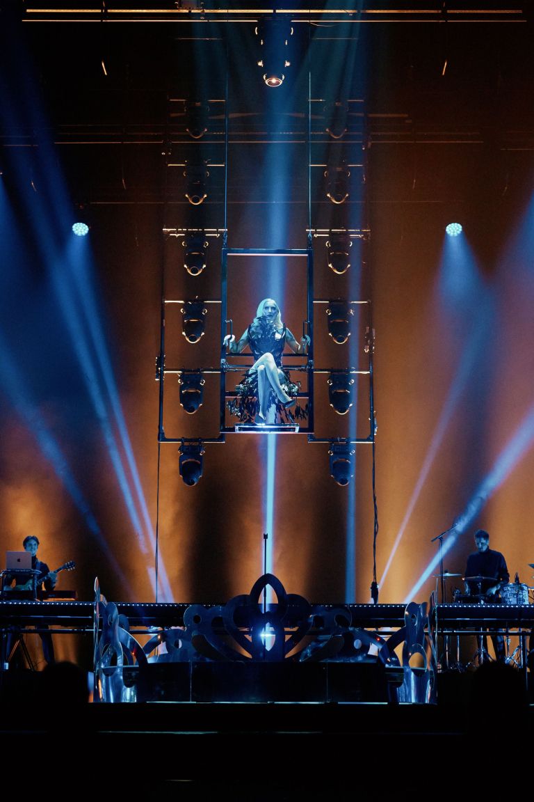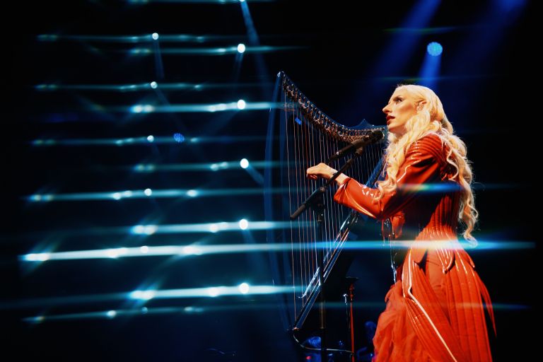 Mojstrica preobrazbe je svojim oboževalcem pripravila mešanico klasike in elektronike, pa tudi gledališke teatralnosti in intimnosti. Na odru, ki je spominjal na svetišče, se je kot prava vizionarska umetnica spreminjala iz eterične dive v neukročeno pop boginjo, iz deklice s harfo v elektronsko čarovnico, pripeljala pa je tudi malce evrovizijskega duha. Koncert je poimenovala Posvetitev in s svojo umetnostjo »posvetila« vse svoje oboževalce. Zaigrala jim je na harfo, dokazala, da obvlada tudi teremin, izkoristila orgle v dvorani, bingljala v zraku, na odru pa sta se ji pridružili tudi evrovizijski predstavnici Poljske in Češke, Luna in Aiko.