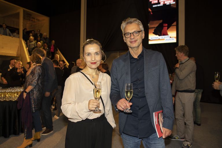 Igralca Maja Kunšič in Primož Ekar sta nazdravila prvi premieri v novi sezoni v ljubljanski Drami.