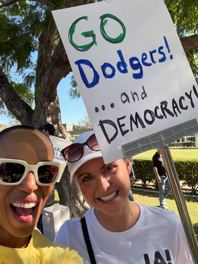 Tako se je igralka Kerry Washington pridružila protestnikom v Los Angelesu in na Instagramu delila utrinke s protesta. Zagreta politična aktivistka je pripisala, da se zahvaljuje vsem, ki so se udeležili protesta. Če sta se srečala na ulicah mesta angelov, sicer nista razkrila, a tam je bil tudi priljubljeni igralec Pedro Pascal. Na svojem profilu na Instagramu je objavil galerijo fotografij, na katerih nasmejan stoji s protestniki, poljublja napihljivega samoroga in pleše. Ob galeriji je zapisal: »Zaščitimo demokracijo.«