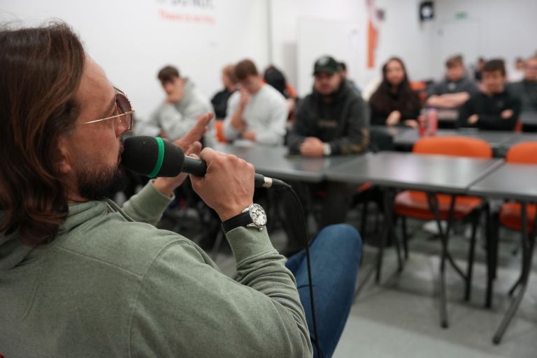 Zlatko, ki je zelo priljubljen tudi med študentsko generacijo, se je z veseljem odzval povabilu in se tako na nek način znova znašel v šolskih klopeh. Na srečanju je poudaril, da je v preteklosti že sodeloval z nekaterimi diplomanti IAM-a, ki so ga fotografirali ali skrbeli za tonsko izvedbo njegovih nastopov, kar je še dodatno potrdilo pomen povezovanja izobraževanja s prakso. V pogovoru je spregovoril o glasbeni sceni, o svoji poti do uspeha ter o tem, kaj pričakuje od sodelavcev, s katerimi ustvarja, študentom pa ponudil iskren in neposreden vpogled v zakulisje glasbene industrije.