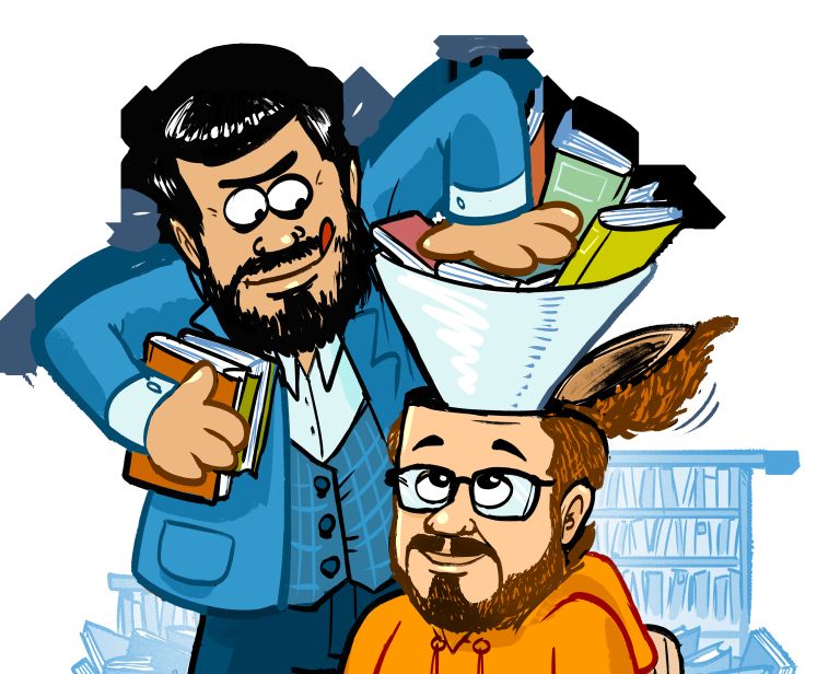 Boštjan: Trenutno sem starš najstnika, ki ga to šele čaka – nekaj pa že vem iz šestega razreda, kako stvari potekajo. Poznam razpršenost otroške pozornosti in vem, kako velik del njihovega sveta poteka v angleščini: YouTube, TikTok … Tudi pri branju je tega vedno več, hkrati pa upada jezikovna kompetenca v slovenščini. Ena od idej je bila pokazati, da so zabavne vsebine mogoče tudi v slovenščini. Predstava ni zasnovana v slogu dijaški.net – ne razlagava celotnih vsebin del, ki jih morajo poznati. Ukvarjava se s pojmi: kaj je lirska poezija in kaj epska; za predstavitev literarnega obdobja pa sva izbrala Pegama in Lambergerja, ki ga berejo že v sedmem razredu, in prek tega pokaževa, kako bi ista zgodba potekala v različnih literarnih obdobjih. Predstaviva značilnosti obdobij, da si lahko sami zgradijo aparat, ki jim bo pomagal pri prepoznavanju obdobij in zvrsti, kar jim bo prišlo prav tudi na NPZ.