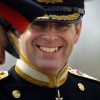 30. september 2005, Wellington: **Andrew Windsor** se med obiskom vojaškega tabora Trentham pelje v lahkem oklepnem vozilu LAV III novozelandske vojske, v spremstvu stotnika Dougala Barkerja (levo).
