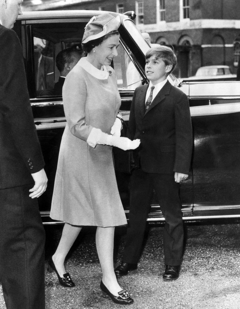 Kraljica Elizabeth II v nežnem trenutku s sinom Andrewjem, avgust 1970.