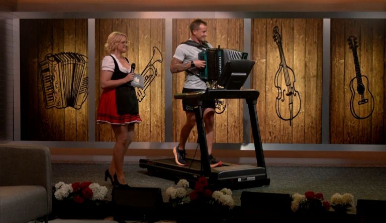 Zato je v studiu pri Darji Gajšek nocoj opravil prav poseben test – tek na tekalni stezi s harmoniko.