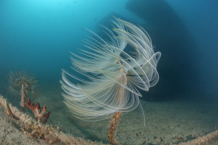 Podvodni fotograf Arne Hodalič dodaja: »Najprej se prilepijo majhni organizmi – alge, školjkice. Nato pridejo drobne ribice in kasneje tudi velike ribe. Struktura daje možnost, da se na povsem golih tleh začne pisati nova zgodba.«