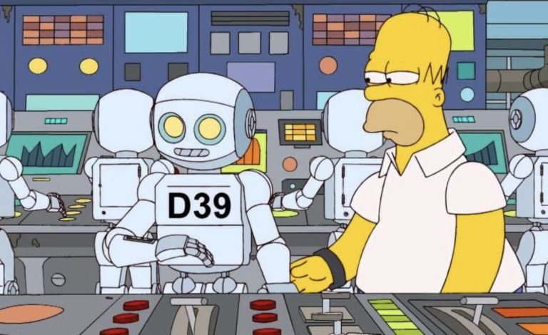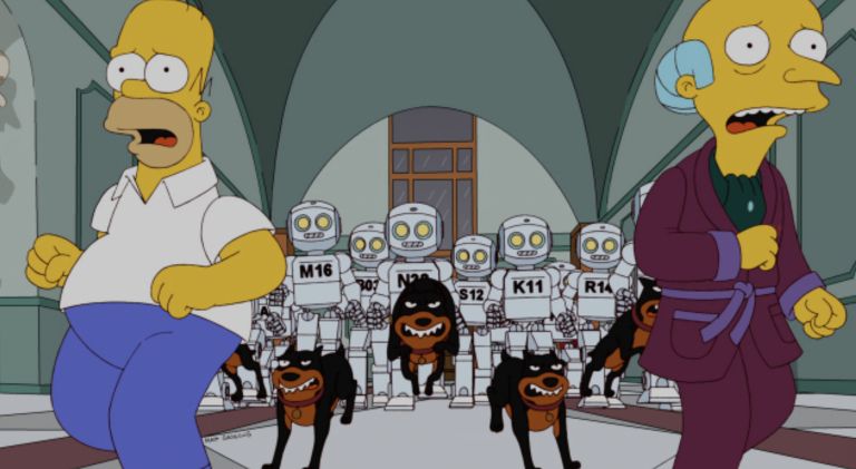 Eden najpogosteje omenjenih primerov prihaja iz epizode Them, Robot iz leta 2012. Gospod Burns v njej odpusti zaposlene in jih nadomesti z roboti. Ti se sčasoma obrnejo proti njemu, mesto pa rešijo prav delavci, ki jih je želel nadomestiti.