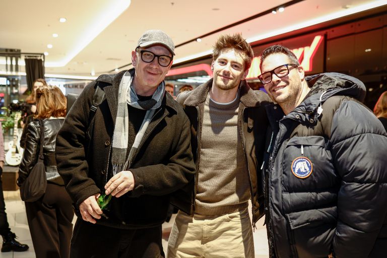 Igralec Matej Zemljič je prišel pozdravit Uroša Smoleja in njegovega prijatelja.